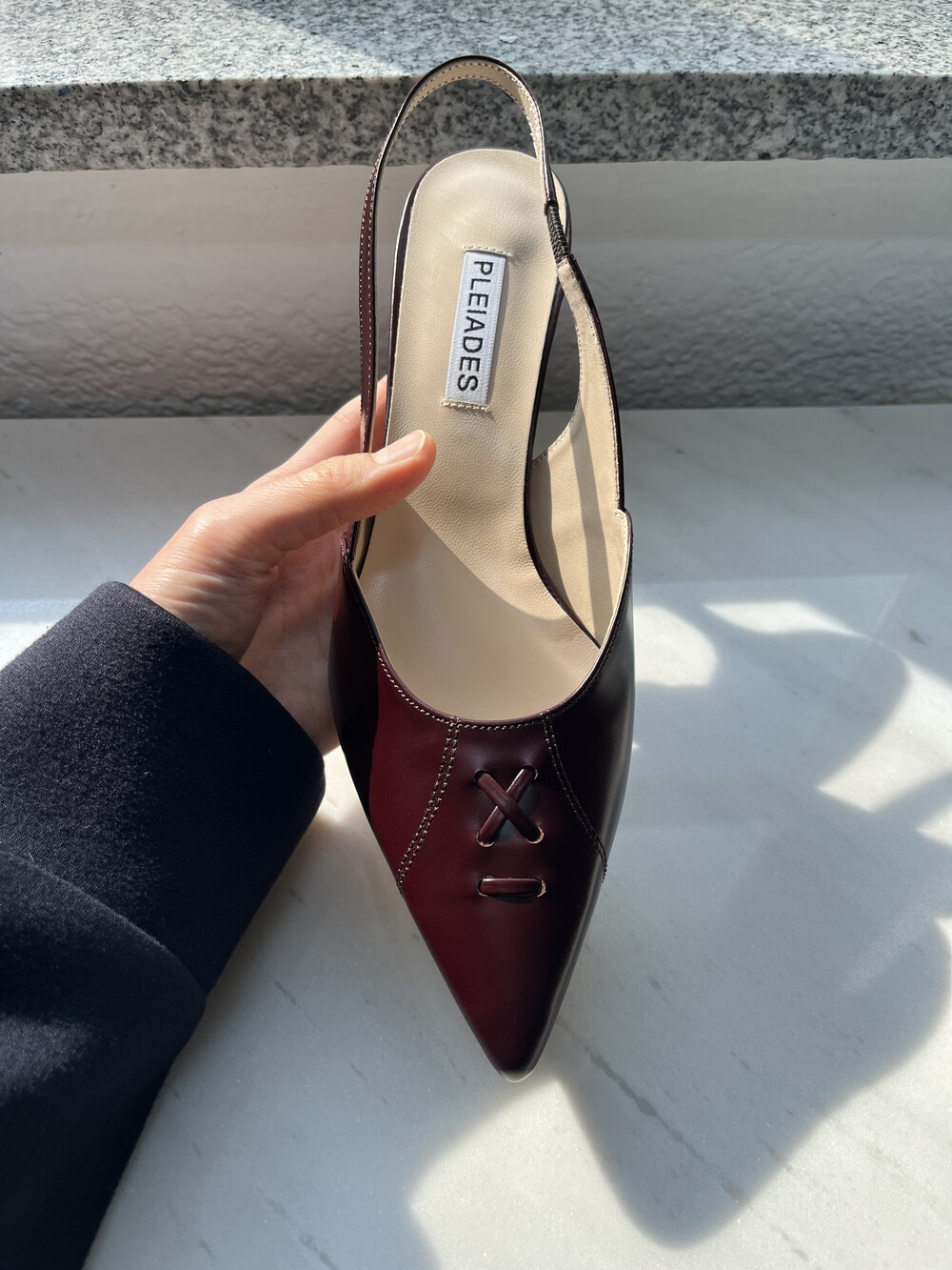 Slingback pumps with lace-up details at the front.