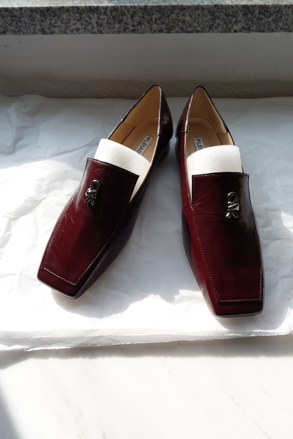 Square-toe, foldable loafers with PLEIADES original hardware, 'Dorae'.