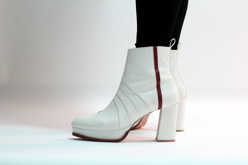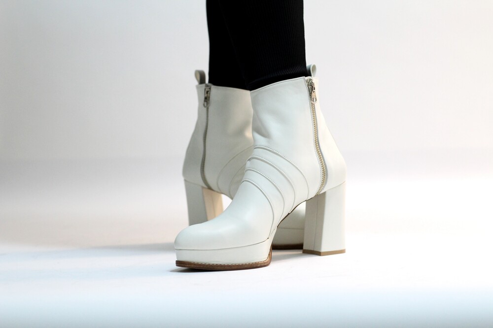 • Materials : Nappa Sheepskin, Cow Leather, Sheepskin Lining, YKK Excella Metallic Zippers, Padded Leather Footbed