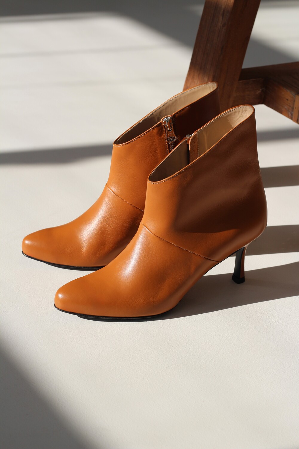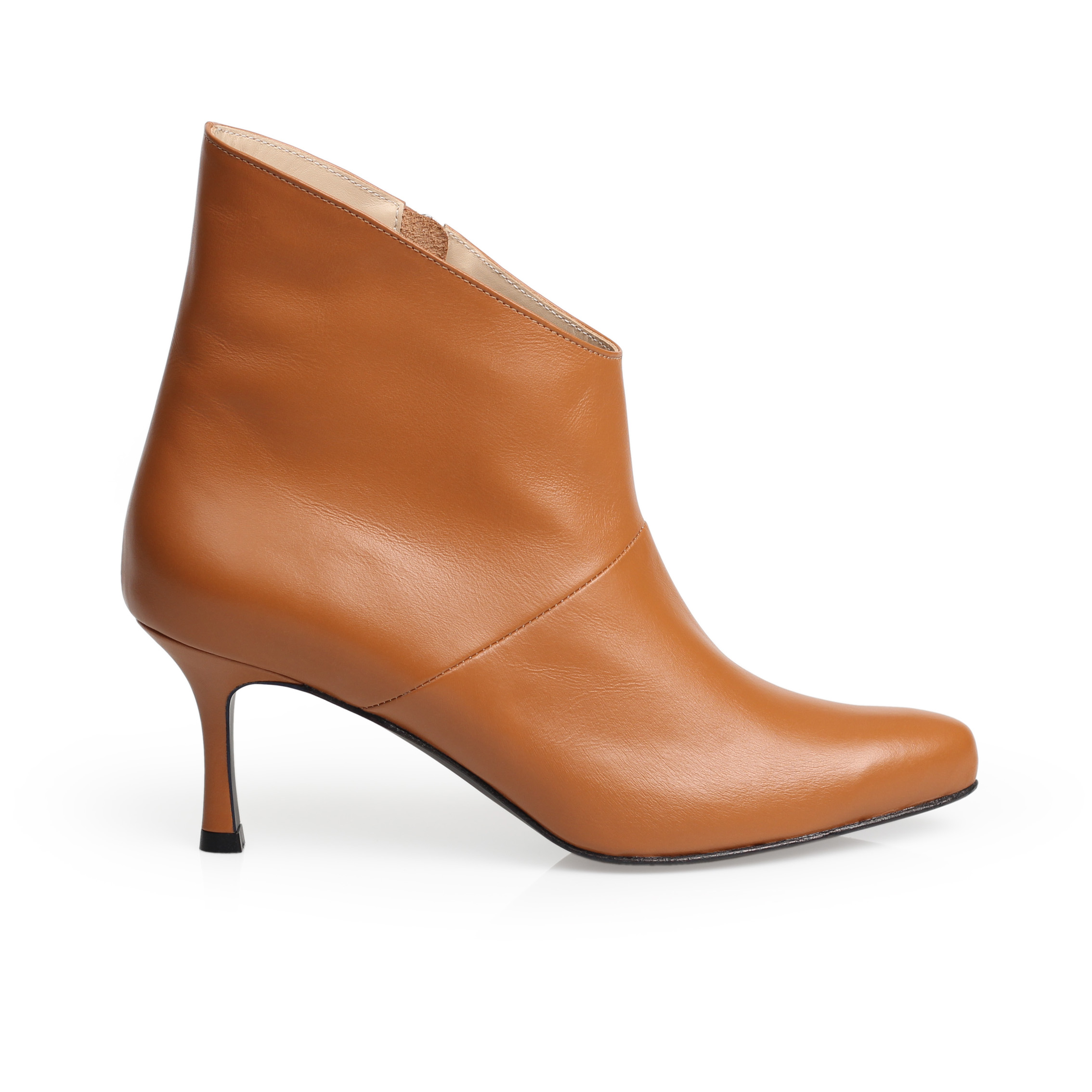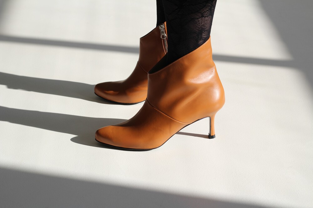 Ankle boots with a sharp, unique top line crafted with exquisite quality of cow hide.