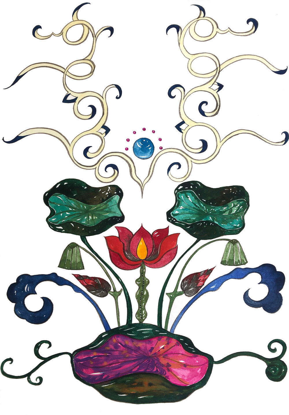 According to the logic of Korean art, all things are bursting into existence once the energy is gathered, and develops its waves into the space, to produce every living thing in this world. Traditionally, lotus flowers represent the birth to another level, as a result of the dynamic of the waves, or one’s profound meditation.